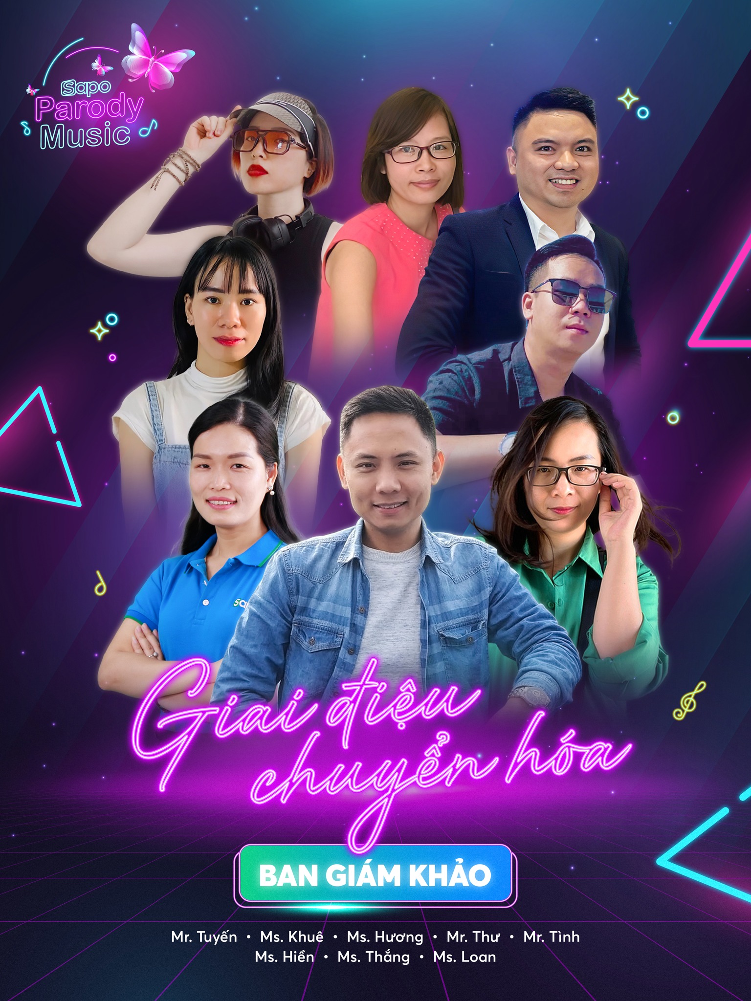 😎 8 anh chị với 8 màu sắc và góc nhìn khác nhau, cộng thêm kinh nghiệm làm giám khảo các cuộc thi lớn nhỏ cùng sự thấu hiểu về các Sapoer và tình yêu to lớn đối với Sapo, các vị ban giám khảo sẽ đưa ra những đánh giá chính xác và công tâm nhất để tìm ra ngôi vị quán quân cho cuộc thi Sapo Parody Music 2023.