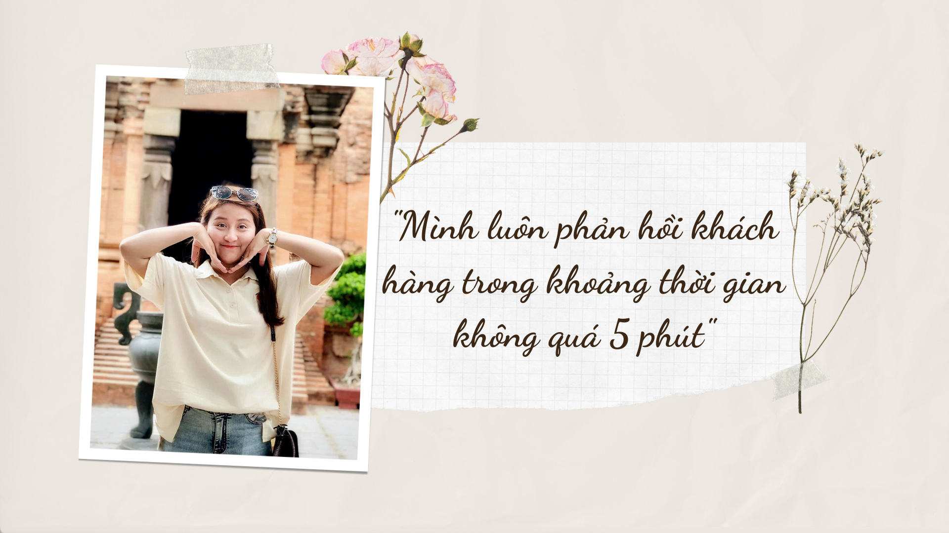 Hành động đầu tiên hướng đến khách hàng mà bạn chia sẻ là việc bạn luôn phản hồi hỗ trợ khách hàng một cách nhanh chóng nhất có thể. Đặc biệt, bạn sẽ không để khách hàng chờ quá 5 phút, Trừ trường hợp bạn ý không có điện thoại ở bên.