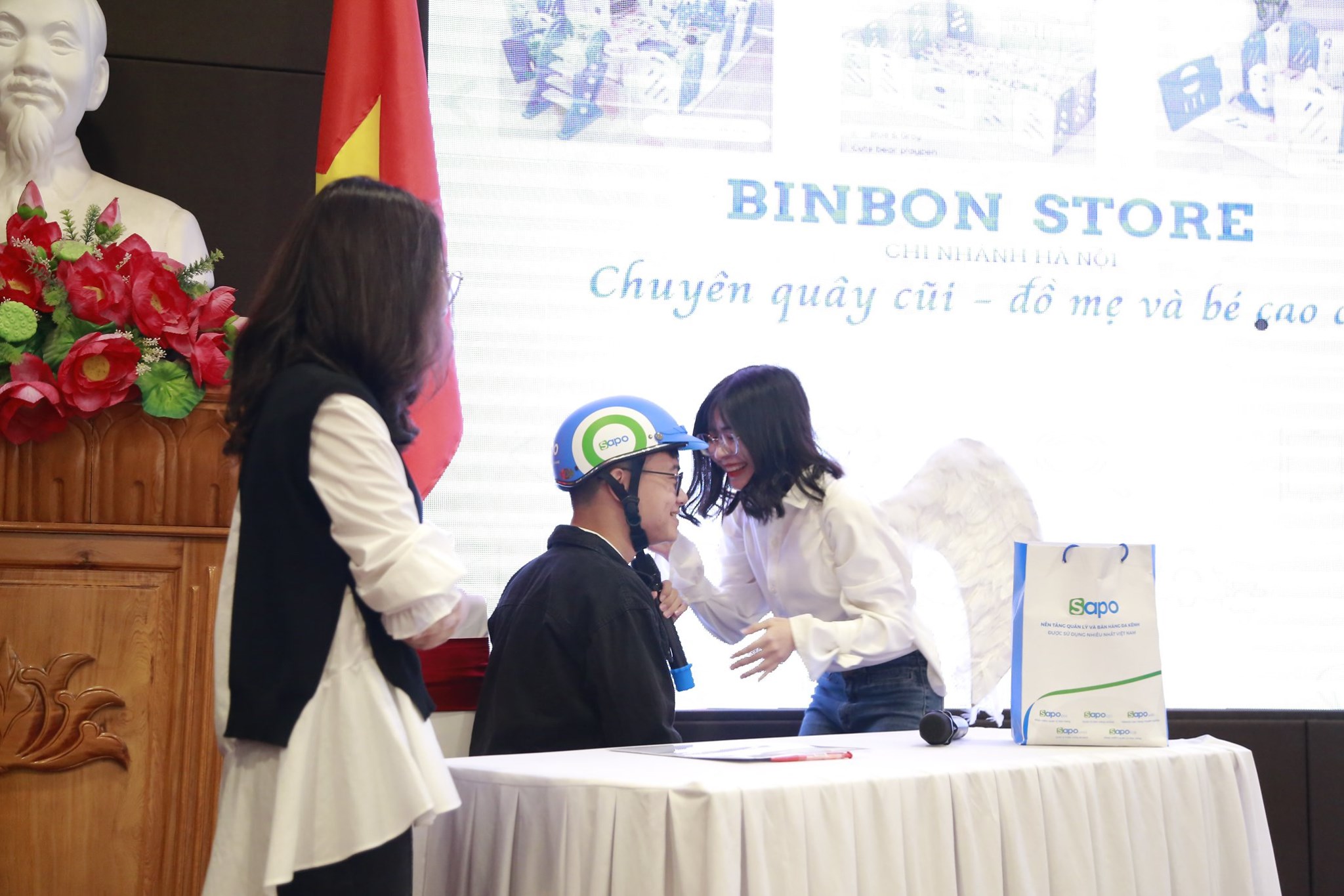 Một chàng trai tới từ - nhóm NH2 - Đại học Thương mại: "đại diện nhóm NH2-TMU em cám ơn chị và ban tổ chức đã tổ chức cho chúng em một sân chơi bổ ích. Mặc dù vẫn chưa thể giành chiến thắng trong cuộc thi nhưng em và các bạn trong nhóm đều cảm thấy rất vui vì có thể vượt qua giới hạn của bản thân . Chúc chị và sapo có thể biến việc bán hàng trở nên dễ dàng, chúc các bạn, các anh các chị sẽ thành công với con đường đã chọn ![]()