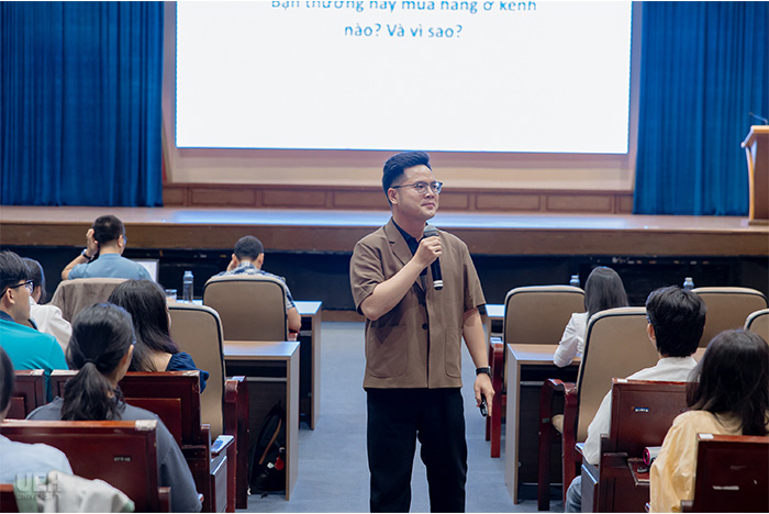 Phần trình bày chuyên đề của anh Nguyễn Mạnh Đông tiếp tục là nội dung được đón nhận nồng nhiệt, mang đến cho sinh viên kiến thức thực tiễn về chiến lược kinh doanh đa kênh và cách doanh nghiệp ứng dụng công nghệ để tối ưu hoạt động trong kỷ nguyên số. Những kiến thức thu nhận được từ chương trình không chỉ giúp sinh viên mở rộng góc nhìn mà còn trở thành hành trang quan trọng cho con đường sự nghiệp phía trước.