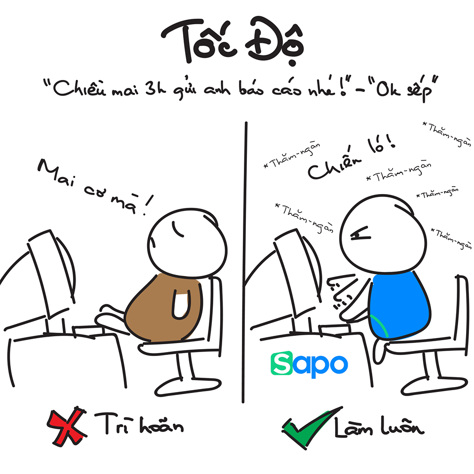 Cùng xem những hình vẽ vui vui của Tổng Hội và hiểu hơn về Giá trị cốt lõi số 3 của Sapo - Tốc độ nhanh nha!
